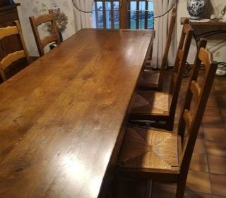 Pour une deuxième vie. 1 table monastère en bois de chêne, matériel de haute qualité. Plateau entièrement chevillé, lisse et sans éclat. Assemblage tenons mortaises. Très belle