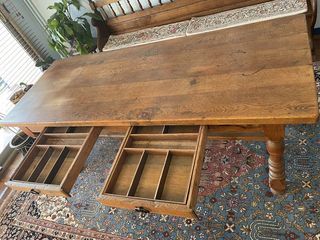 je vend une table 170 X 73 cm avec 2 rallonges de 45cm chacune. Bonne Qualité quelques traces d'usure ( voir photos).