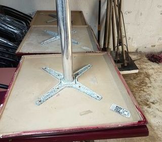 Table bistrot en marbre Pied noir en fonte Etat correct Diamètre 60 cm ? hauteur 71 cm Remise en main propre