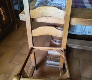 Suite à vente immobilière, je propose une salle à manger ancienne en chêne massif, ensemble complet en très bon état. Comprenant : Table avec plateau protégé 6 chaises assor
