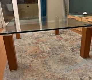 Je vends une table basse en verre, pratique et fonctionnelle, idéale pour compléter votre salon. Le meuble peut présenter quelques défauts : légers écarts sur les niveaux d'un p