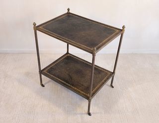 ??Magnifique desserte Bar Maison Jansen ? Laiton, bronze et cuir à la feuille d'or ? Circa 1950?? L'élégance du Mid Century à la Française. ? ? Livraison Gratuite Paris et ID