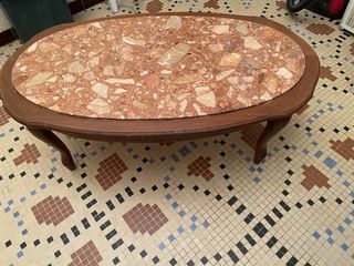 Table de salon dessus bois, caisson blanc avec étagère de rangement. Très bon état. Dimensions : L 1,08 cm, largeur 60 cm, H 41 cm.