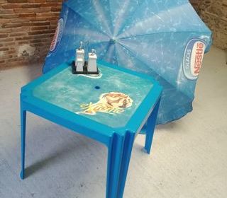A vendre ensemble de jardin table de diamètre 1 m en plastique bleu et 4 fauteuils option un parasol sans pied Bon état général ne répond pas au sms Livraison possible sur S
