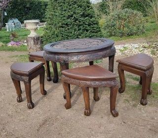 Vends+ancienne+table+basse+ronde+de+salon+avec+ses+4+tabourets,+facile+à +ranger,+dimensions+de+la+table+:+diamètre+77+cm+,+hauteur+52+cm+,+dimensions+des+tabourets+triangulaires+: