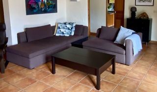 Canapés assemblés avec tablette tiroir = 2m85x 2m25 (Plus petit sans tablette) Descriptif total en photo