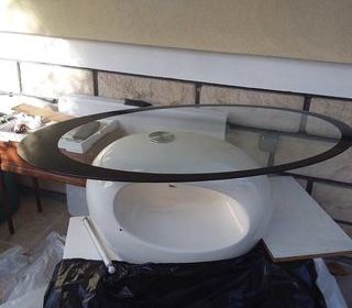 table+de+salon+ovale+avec+dessus+verre+structure+du+pied++en+fibre+de+verre+113x63x45