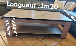 Table basse en bois robuste En parfait état Dimensions : Longueur : 1m20 Largeur : 60 cm Hauteur : 41.5 cm A venir chercher sur place