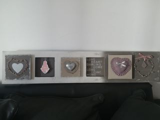 Tableau décoration avec plusieurs déco parme et violet TBE