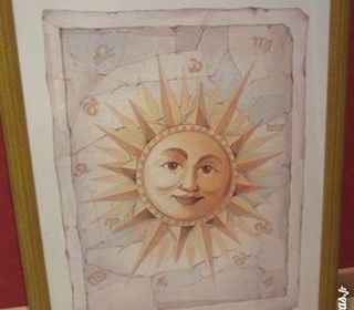 Bonjour, Je vends ce tableau représentant un soleil. Tableau en parfait état. Dimension : H 78 cm et L 62,5 cm A retirer sur place - Paiement en espèces uniquement