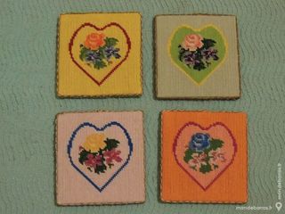 un cadeau , petit cadre en canevas demi point de croix . 13 cm / 14 cm