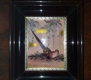 Plaque émaillée HELCA représentant deux oiseaux, excellent état Dimensions : sujet: 11,6 x 8,6 cadre: 19,3 x 16,5