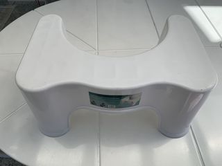 Marche pied WC pour adulte en plastique blanc Rehausse pour enfant En très bon état Dimension P 31 cm long 45 cm hauteur 21 cm Photos complémentaires sur demande