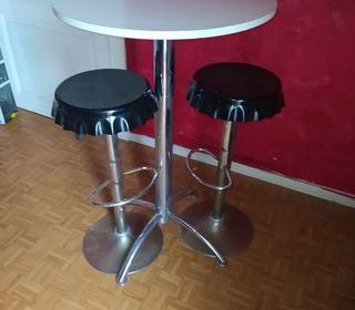 Bonjour mesdames et messieurs suite à mon déménagement je cède ce mange debout et ces tabourets, qui tournent à 380° et s'abaisent en fonction de vôtre poids. Je voulais change