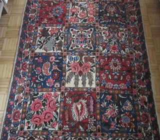 Tapis oriental Origine : Bakhtiar Jahad Matière : laine Entièrement fait main Longueur : 170 cm Largeur : 102 cm En très bon état, nettoyage à faire sur une toute petite par