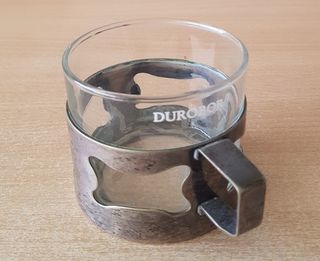 tasse à café thé vintage verre et métal Durobor hauteur 6,5 cm diamètre 7,5 cm
