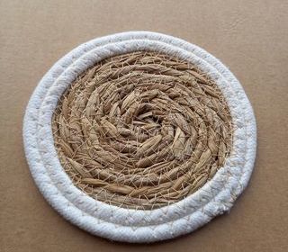 Dessous de plat en paille avec liseré blanc, diamètre 16,5cm Pour tasses, théières, soucoupes, casseroles, etc... Maison, cuisine, fête, décoration de table Neuf, envoi po