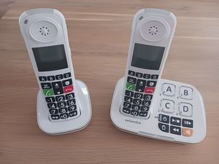 Téléphone sans fil avec répondeur,(2 combinés) grand écran rétro éclairé, grosses touches et des fonctions de confort renforcées. Etat neuf