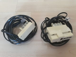 4 articles vendus à l'unité. Photo 1 : . 2 câbles, longueur 3 mètres, connecteur RJ11 (téléphone) et prise gigogne (prise murale). Sur l'un des 2 câbles, la prise gigogne est