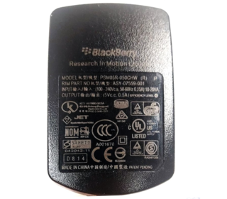 Chargeur BlackBerry d'origine AC/DC 5V 0.5A avec fiche Usb mini-B. Destiné à l'alimentation des téléphones Blackberry, ce chargeur peut être utilisé pour tout appareil équipé d'