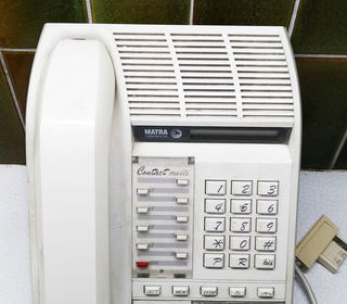 Téléphone filaire "Contact Multi" de Matra. Fonctionne sur une ligne téléphonique classique et peut se raccorder à la sortie téléphonique d'une box internet. Position à poser ou mu