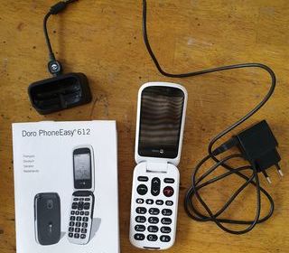 Téléphone portable DORO "Phone Easy 612" Avec appareil photo Fonction mains libres Alarme de réveil Volume réglable Taille du texte réglable Fonction ICE Radio FM Socle cha