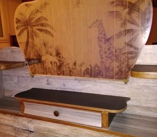 Meuble cosy entièrement refait. Recustomisé thème Jungle peinture et Déco très tendance. Avec miroir retravaillé "accessoire enlevable". Peut servir en tant que tête de lit et t