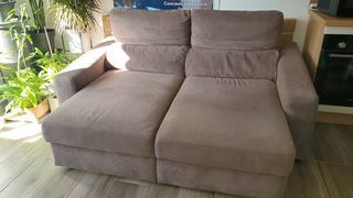 Grand salon d'angle 1 an et demi . Méridienne coffre lit .Réglages des appuis têtes. Positionnement des 2 assises en couchages. Couleur chocolat tacheté. Cause ne l'emportera pour