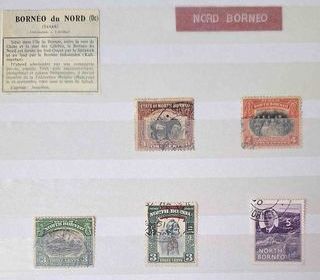 Particulier vend suivant photo cette série de 5 timbres de collection de Bornéo du nord en bon état général de conservation. N'hésitez pas à me contacter pour une proposition de p