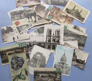 Cartes en noir et blanc et en couleur de l'époque, cartes écrites au dos et timbre sur le devant. pour certaines. 14 de Paris 1 du 77 7 du 78