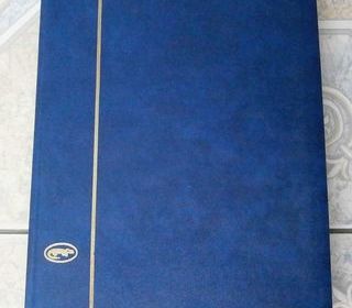 Album classeur pour timbres - 48 pages fond blanc Grand format : 30,5 X 22,5 cm ? 10 bandes par page. Classeur en bon état (peu servi). Quelques traces de jaunissement. Petit pr