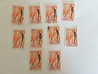 Timbre france 25ème anniversaire de déclaration des droits de l'homme 1973- lot 0.60 euro ou 0.06 euro l'unité Marseille 9 eme 1 euro de frais de port attention envoi que pour 1