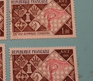 Timbre france XXIèmes jeux olympiques échiquéens 1974- lot 0.20 euro ou 0.10 euro à l'unité Marseille 9 eme 1 euro de frais de port attention envoi que pour 1.50 euro de commande