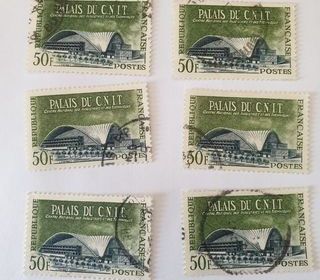 Timbre france Palais du C.N.I.T 1959 lot 1.08 euro ou 0.18 euro à l'unité Marseille 9 eme frais de port 1 euro envoi qu'à partir de 1.50 euro de commande