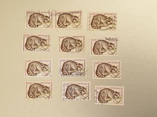 Timbre france Raton laveur de la Guadeloupe 1973- lot 0.72 euro ou 0.06 euro à l'unité Marseille 9 eme 1 euro de frais de port attention envoi que pour 1.50 euro de commande mini