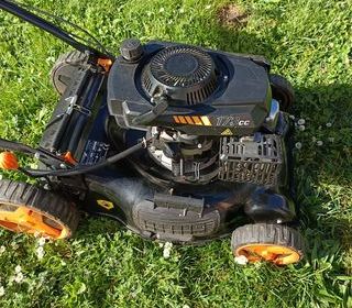 Tondeuse tractée essence très bon état Peu servie, comme neuve 51 cm de coupe Lame mulching et bouchon de sortie d'herbe. Vidange faite Démarre au 1/4 de tour.