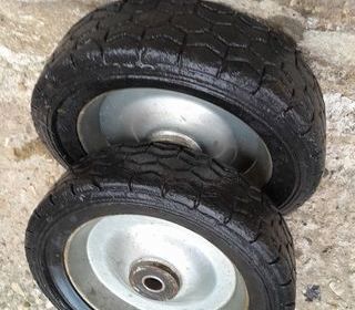 2 roues en métal de tondeuse HONDA HRA 214/216. diamètre 22 cm, largeur du pneu 6 cm, diamètre du trou central : 1,5 cm. 30 euros le jeu de 2.