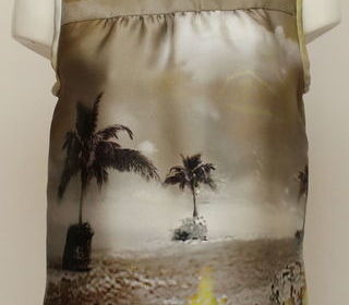 Top beach print PRADA T.36/38 Fr soie et polyester H 60 cm aiss 48 cm fermeture zip dos entièrement doublé TBE Envoi possible Rmp métro Corentin Celton