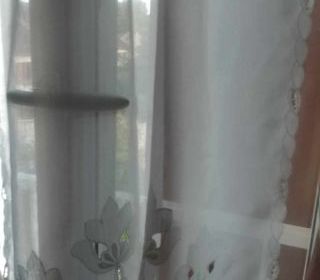 3 Panneaux de Rideaux en polyamide blanc avec broderies Dimensions d'un panneau Hauteur 1.75 mètre Largeur totale 4 mètres Donne les tringles et les anneaux en bois Etat neuf Po