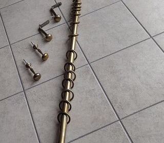 Kit complet tringle à rideaux en laiton la barre 1,50m, diamètre 35, avec les 2 embouts 2 supports de barres 2 gonds attache rideaux 14 anneaux laiton à retirer sur St Omer
