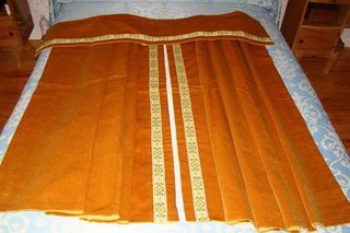 Double rideaux en velours ? Neufs en velours de très belle qualité avec passementerie et doublure intérieure avec sa cantonnière entièrement fait main Couleur : vieil or La