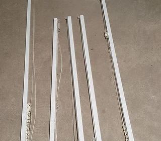 05 TRINGLES A RIDEAUX BLANCHES RAIL / CORDON. 01 DE 260 CMS, SECTION 25X15 MM. 01 DE 140 CMS, SECTION 25X15 MM. 03 DE 120 CMS, SECTION 25X15 MM
