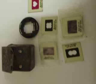 Diapo et support pour faire de la Macro Sur caméra super 8 Marque SANKYO FOR LXL 255 Macro TITLER avec sa boite cuir et 9 diapos