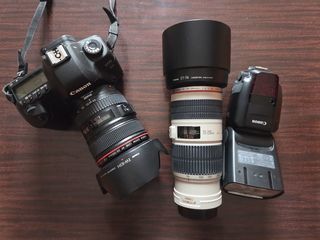 Appareil photo Canon argentique AL1 +moteur+3 objectifs canon; objectif canon 50mm+objectif canon 28 mm,+objectif canon 70-210mm +flash automatique canon en très bon état.+Sac de