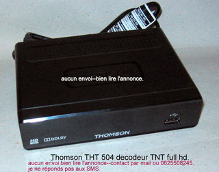 pas testé je revends à l état de pieces 10€ pour l ensemble. decodeur Thomson THT504. cable prises péritel. cable tv cable HDMI de 1.50m . DISPONIBLE AU DOMICILE WATTRELO