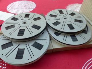 Vends 4 bobines Posso plus 4 boites Bobines de films pour 8mm ou super 8 mm. Diamètre de chaque bobine : 17.5 cm. Sur chaque grande bobine sont présents des films de famille je