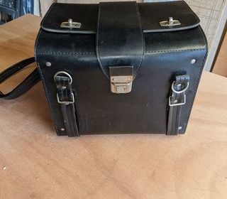 sacoche pour camera ou appareil photos en cuir noir rigide