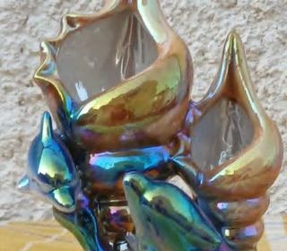Magnifique Poterie à poser... décoration côtière "Coquillages et Dauphins" * Matière : Céramique... Effet brillant * Dimensions : - Hauteur... 14,5 cm - Socle de 7 cm d