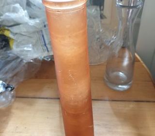 Vase soliflore orange, vintage Hauteur : 31 cm - Largeur col : 5 cm, largeur pied 6 cm Envoi possible, pour consulter toutes les offres, tapez Régine - Aix-les-Bains