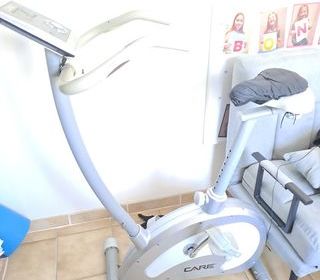 Je vends ce vélo d'appartement de la marque Domyos, modèle 500 avec selle confort. Guidon et selle réglables en hauteur 2 stabilisateurs arrière pour s'ajuster à tous les ty